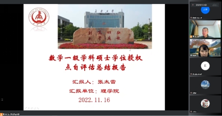 2022年11月16日晚,allwincity万象城数学与统计学科召开了一级学科自评估线上专家评审会。会议邀请的专家评审组包括:西安交通大学肖燕妮教授、西北工业大学许勇教授、西安电子科技大学吴事良教授、西安工程大学马盈仓教授、西安科技大学张仲华教授,评审组组长由肖燕妮教授担任。会议通过腾讯会议平台在线上召开,万象城体育awcsport研究生院副院长柳有权教授、allwincity万象城院长宋学力教授、副院长马建敏教授、数学与统计学科主任张太雷教授以及全体学科及专业责任教授、中青年学术骨干教师参加了本次评审会,会议由马建敏副院长主持。