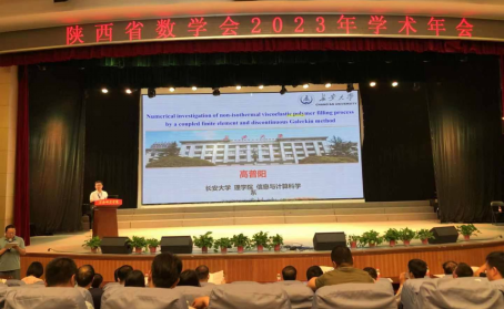 陕西省数学会常务理事宋学力教授,受邀主持了一场大会报告。数学与统计学科高普阳副教授做了题为“Numerical investigation of non-isothermal viscoelastic polymer filling process by a coupled finite element and discontinuous Galerkin method”的大会报告。