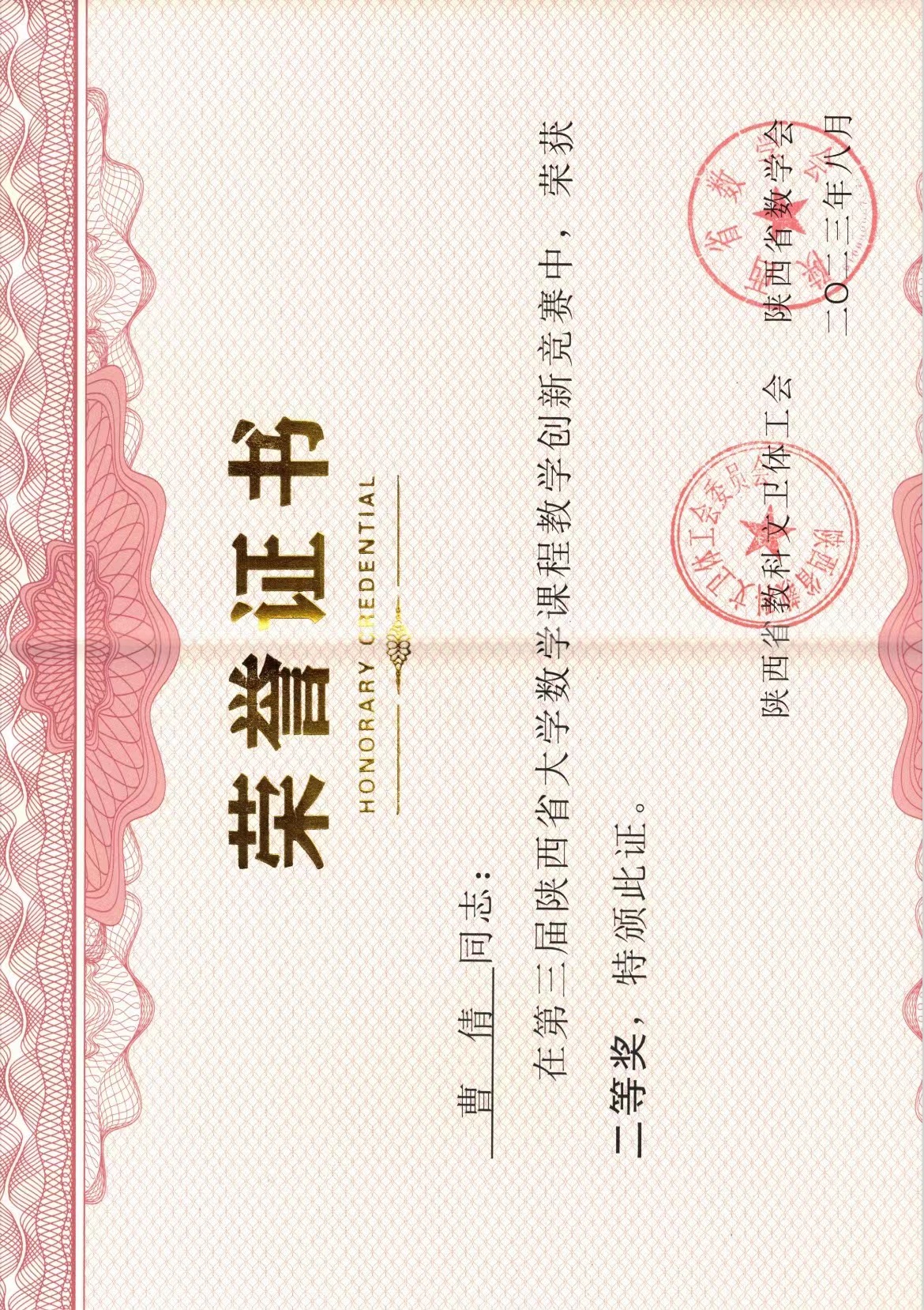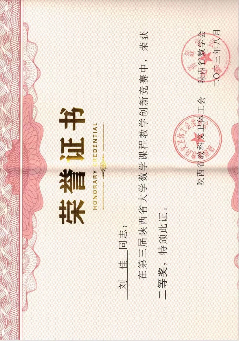8月19日,第三届陕西省大学数学课程教学创新竞赛活动颁奖仪式暨第四届陕西高校大学数学课程建设与教学改革研讨会在榆林学院举行。竞赛分为材料评审和视频评审两个阶段,经过激烈的角逐,我院数学与统计教学发展中心选派的三位教师均获奖,其中李玉超老师获得一等奖,曹倩、刘佳两位老师分别获得二等奖。