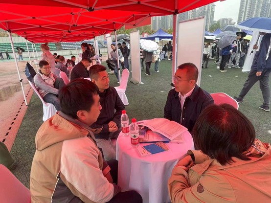 为了进一步引导2024届毕业生踊跃投身就业市场,紧抓秋季校园招聘“关键期”。根据学校安排,10月18日,万象城体育awcsport2024届毕业生秋季就业双向选择洽谈会在北校区朝晖运动场举行,我院积极组织2024届毕业生以及部分低年级学生参加本次“双选会”。校党委书记陈志坚一行莅临allwincity万象城校企洽谈区进行指导交流。学院党委书记闫永刚,党委副书记屈颖,辅导员刘延海、杨雪菲前往“双选会”现场,与招聘单位接洽交流,积极推荐毕业生。