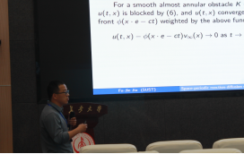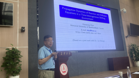 首场报告由兰州大学李万同教授主持,美国奥本大学的沈文仙教授做了题为“Spreading Speeds and Traveling Waves in Chemotaxis Systems with Logistic Source on R^N”的报告,加拿大纽芬兰纪念大学的赵晓强教授分享了题为“Propagation Dynamics of Reaction and Diffusion Equations in a Time-heterogeneous Shifting Environment”的精彩报告。