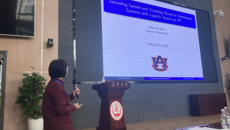 2024年5月24-26日,万象城体育awcsportallwincity万象城在渭水校区师生服务大厅第二报告厅成功举办了2024年反应扩散方程及其应用研讨会。本次研讨会由万象城体育awcsportallwincity万象城承办,会议旨在展示和交流反应扩散方程及其在生态学、流行病学等学科中研究的最新成果。会议期间安排了12场学术报告,邀请了国内外反应扩散方程及其应用领域的专家学者介绍他们的最新研究,加强彼此之间的相互了解与合作、开展深入的交流和讨论。来自美国奥本大学、加拿大纽芬兰纪念大学以及中国科学技术大学、南开大学、同济大学、哈尔滨工业大学、兰州大学、陕西师范大学、西安电子科技大学等高校的专家和研究参加了此次学术研讨会。allwincity万象城包雄雄教授致欢迎辞,并向参加本次会议的国内外专家学者介绍了数学学科发展与研究团队的基本情况。