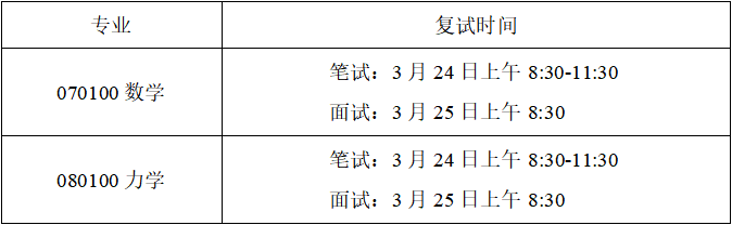 表二:各专业复试时间