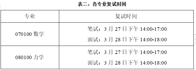 各专业具体复试时间详见表二: