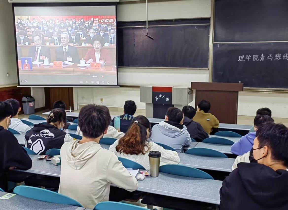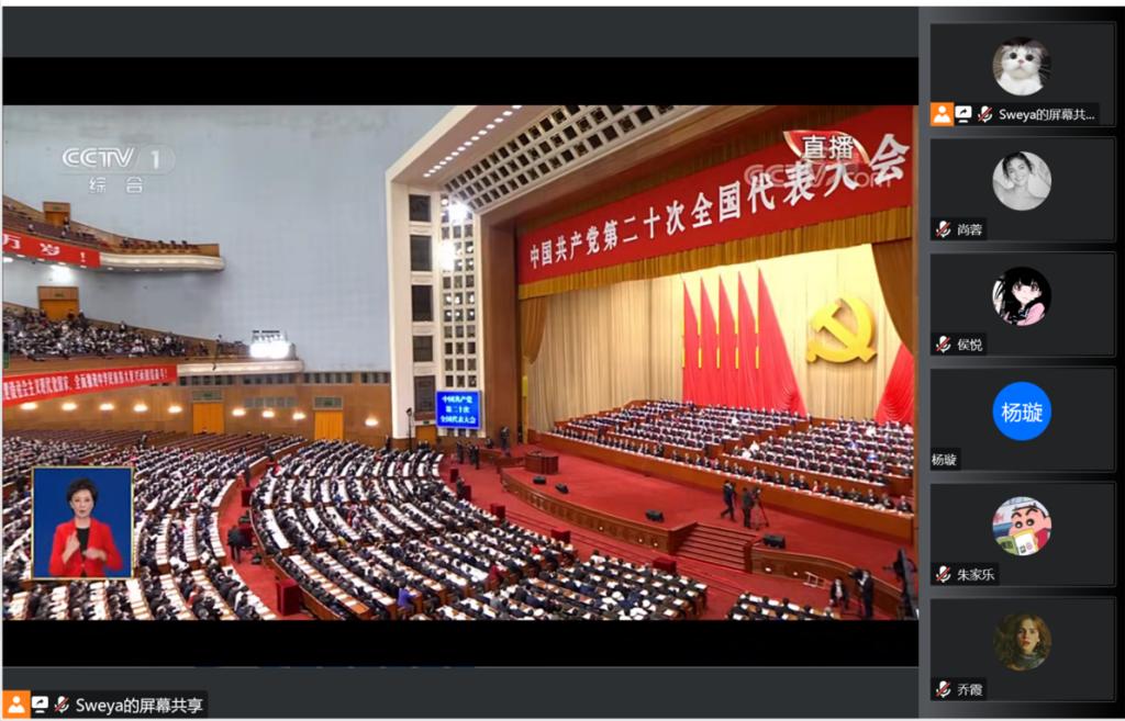 10月16日,中国共产党第二十次全国代表大会在北京人民大会堂开幕。习近平代表第十九届中央委员会向大会作报告。万象城体育awcsportallwincity万象城团委组织团员青年以青马班和团支部为基本单元开展组织化学习,主会场设在渭水校区WT1202教室,各团支部设置分会场在腾讯会议线上参加,本次观看开幕会活动由学院团委书记杨雪菲主持。