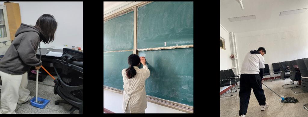 支部成员在打扫办公室、研究生自习室(部分展示)