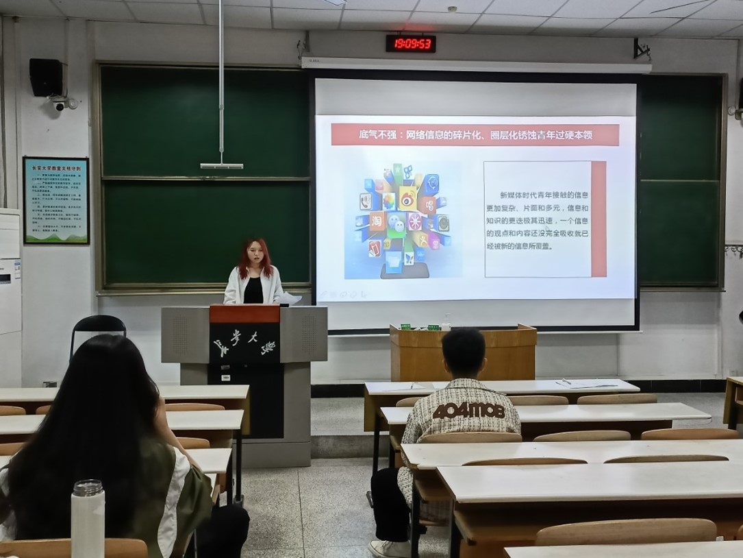 支部书记刘宗萱介绍了本次主题党课的主讲人并强调了会议纪律,四位宣讲团成员依次作了主题宣讲报告。