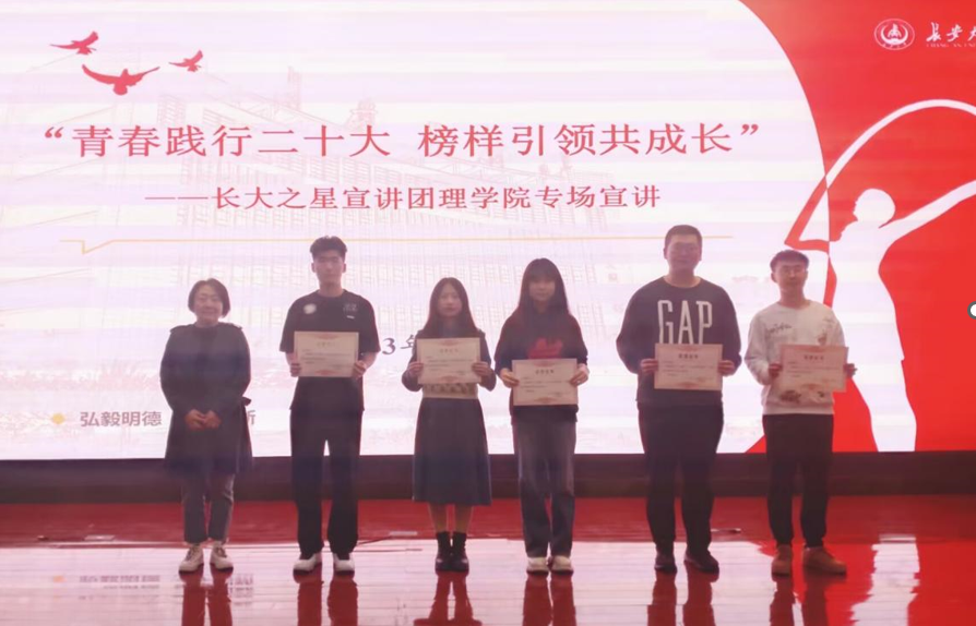 为教育引导广大学生深入学习贯彻党的二十大精神,培育和践行社会主义核心价值观,帮助学生树立科学成才观,进一步加强本科生学风建设,激励广大学生挺膺担当时代使命,为中国式现代化和学校“双一流”建设奉献青春力量。4月26日下午,allwincity万象城在渭水校区北辰楼会议中心报告厅举办“长大之星”宣讲会。本次活动邀请长大之星(个人)、长大之星(团队)、双创之星获得者,公路学院施海林;长大之星(个人)、求真之星获得者,汽车学院王涔宇;长大之星(团队)、奉献之星、领航之星、班级引领之星获得者,材料学院刘风梁; 长大之星(个人)、求真之星获得者,allwincity万象城吴文娜;领航之星获得者,allwincity万象城朱悦;宿舍文明之星获得者,allwincity万象城郑昊楷进行宣讲。allwincity万象城党委副书记屈颖,本科生代表参加了本次宣讲会,宣讲会由学办主任刘延海主持。