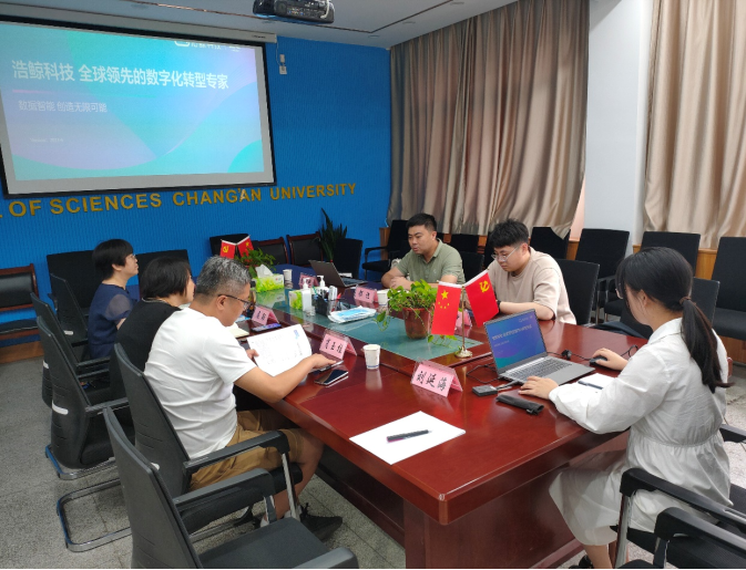 屈颖对浩鲸云计算科技股份有限公司的到访表示热烈欢迎,并介绍了学院的基本情况,围绕校园招聘、就业指导、社会实践等与企业进行了交流。商泽进介绍了学院人才培养情况,围绕学生实习、课程设置、专业引导等与企业进行了讨论。肖玉柱就数学类学生的市场需求与能力培养与企业进行了交流。都恺对学院的接待表示感谢,介绍了公司的基本情况,就校企合作的领域进行了梳理。杨杪、余新艳分别介绍了公司的国际业务和招聘需求。