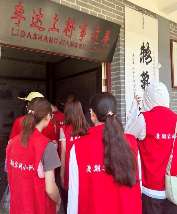 实践队员参观了李达上将事迹展,在工作人员详细、生动的讲解下,实践队员了解了李达上将参与指挥的多场战役。馆内展览都是以历史事实为依据,以将军家属提供的图片、生前在军队用过的一部分物品等进行实物展示,表现了李达将军为革命事业鞠躬尽瘁的先进事迹。在长达30年的参谋生涯中,他曾辅佐过六位元帅,参与了著名的神头岭战斗、百团大战、上党战役、鲁西南战役以及渡江战役等。