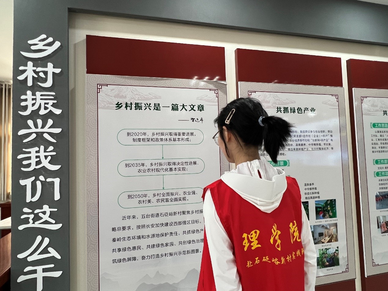 队员们跟随吕军锋参观了石砭峪新村的村史馆和村史长廊,来到文化礼堂一起观看石砭峪新村乡村振兴的发展历程。随后,通过走访调研深入了解了村庄布局、居住环境、农业生产方式、乡村集体经济发展、乡村文明建设以及乡村发展历史和变迁。