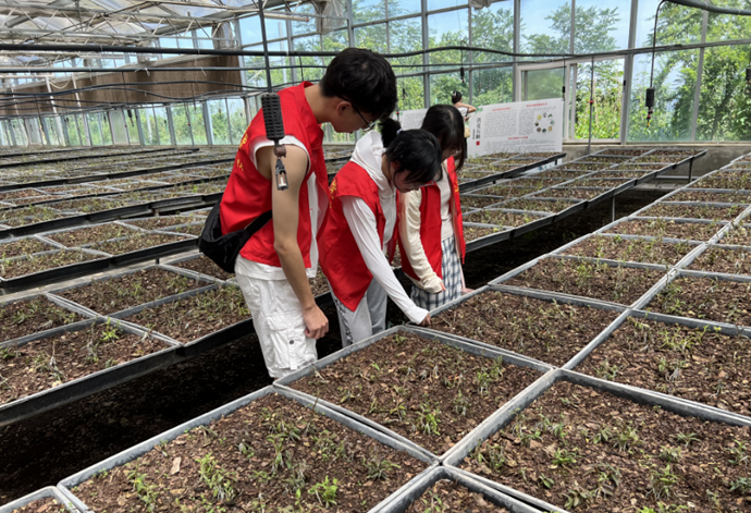 实践队员们观察铁皮石斛