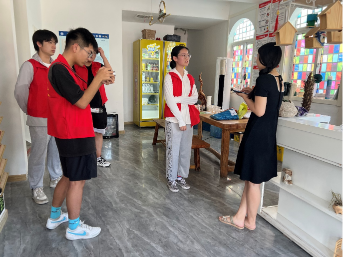 随后实践队走进新村,深入群众。随着社会经济发展,文化旅游业发展迅速,越来越多的游客前往乡村旅游,民宿发展是乡村振兴的重要促进因素。民宿可以为乡村带来就业机会,促进乡村文化传承发展,增强当地乡村形象,因此乡村民宿发展成为了乡村振兴不可或缺的一部分。实践队员们根据了解掌握的信息走访当地民宿,与民宿老板进行深入交流,探讨当地民宿发展所面对的机遇与挑战。