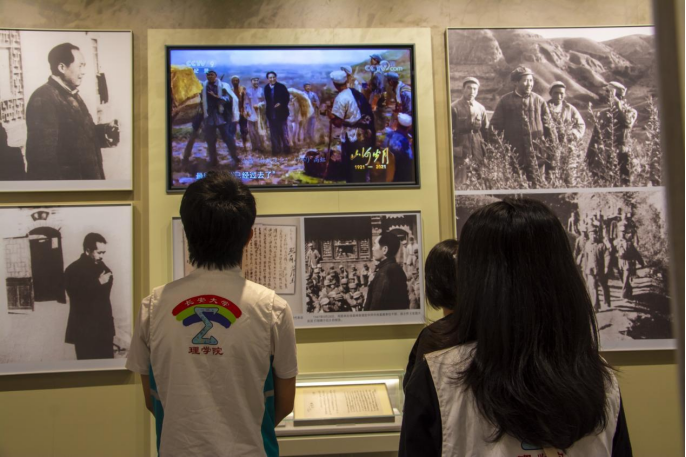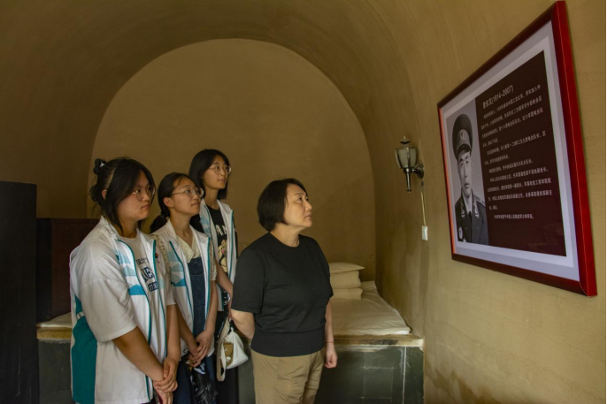 神泉堡是中共中央转战陕北的纪念地,在讲解员的带领下,实践队伍走进神泉堡革命纪念馆。窑洞中,毛泽东、周恩来等老一辈共产党人曾经用过的方桌、木椅、砚台等整齐地摆放着。馆内展示着大量的革命文物、历史照片,从“扭转乾坤”、“运筹帷幄”、“鱼水情深”、“走向胜利”四部分充分展现了党中央转战陕北的革命历史。看着馆里一张张图片、一件件文物,使队员们真切地感受到老一辈革命家艰苦朴素、勇往直前、团结奋进的精神风貌。