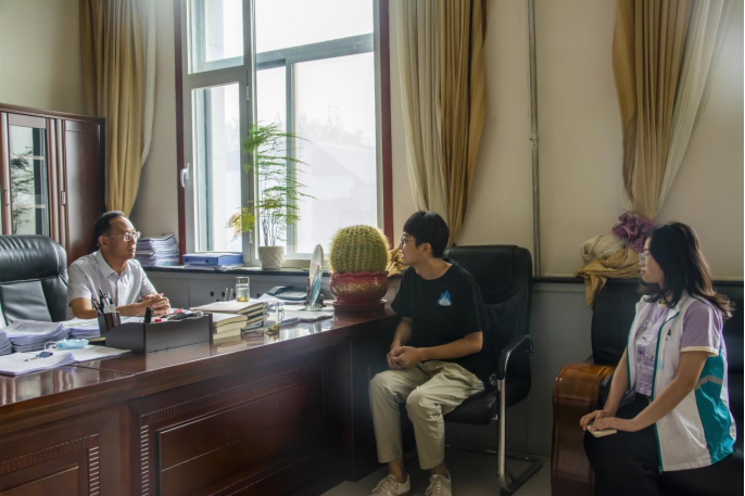 实践队来到刘国具镇人民政府与镇党委书记王晔进行座谈,队员们了解到刘国具镇坚定不移地走产业振兴、人才振兴的乡村振兴道路。王书记表示,镇里耕地比较多,有利于发展现代农业,目前引进了农业高新技术以促进杂粮种植产业;毛驴养殖是本镇一个特色产业,对当地经济具有促进作用。