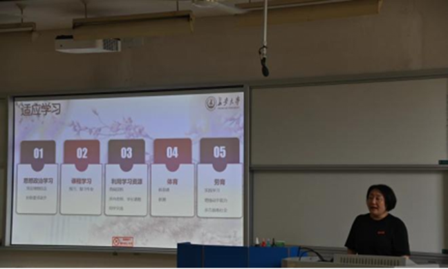 首先,屈颖副书记以“了解”作为关键词,向同学们讲述了学校的悠久历史,将学校优质的教育资源、丰富的校园活动作以介绍,希望同学们可以主动去了解自己生活的城市、校园以及身边的老师和朋友,为适尽快适应和融入大学生活打下良好的基础。