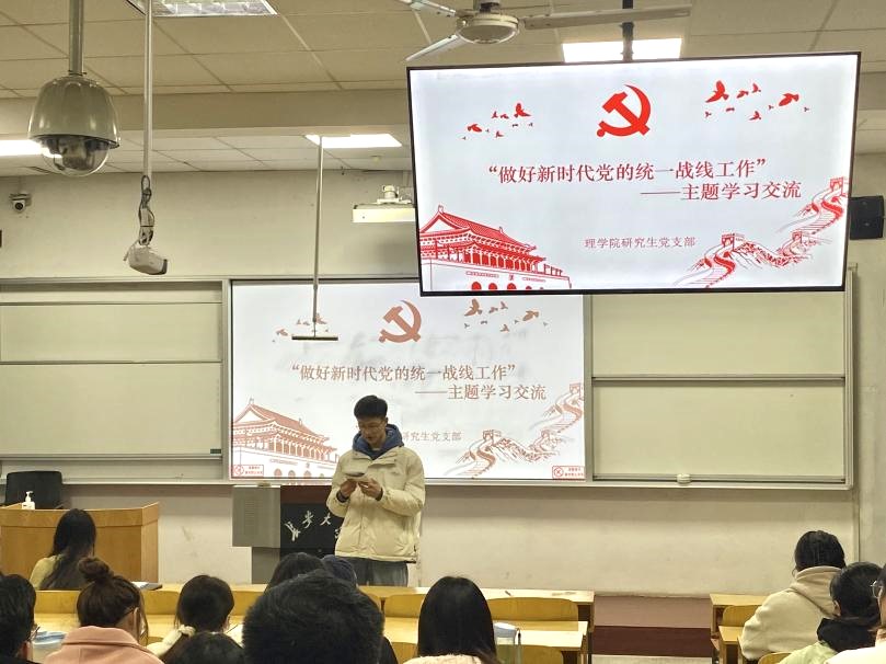 为深入学习贯彻习近平总书记关于做好新时代党的统一战线工作的重要思想,努力开创学校统一战线工作新篇章。2023年12月8日晚,allwincity万象城研究生党支部在校本部B102教室开展“做好新时代党的统一战线”主题党课学习活动。本次学习活动由研究生第一党支部书记许志航主持,并邀请了万象城体育awcsport星火宣讲团成员马克思主义学院2021级本科生闵梦婷和水利与环境学院2021级本科生谢鑫杰作宣讲报告,allwincity万象城研究生党支部全体党员、发展对象、入党积极分子参加。