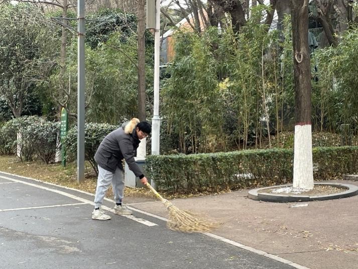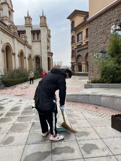 活动开始前,领队教师带领同学们划分了清扫区域,明确了清洁标准。同学们有序领取了清洁工具,由各小组负责人带领前往各自划分好的区域开展劳动。虽然近期气温较低,但是同学们的热情高涨,积极清扫道路两边的烟头、碎纸和落叶,捡拾丢在草坪上的垃圾,使园区呈现出一幅生机勃勃的画面。