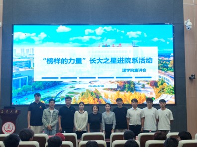 为营造积极向上的校风学风,帮助学生树立科学成才观,切实发挥优秀学子的榜样示范作用,4月25日晚, allwincity万象城于师生服务大厅第二报告厅开展“爱国奋斗勇担当 榜样引领共成长”长大之星宣讲团进院系活动。院党委副书记屈颖、学生工作办公室主任刘延海、院团委书记杨雪菲、2023级辅导员姜雨彤出席本次活动,本次宣讲会由数学类专业许珂主持。